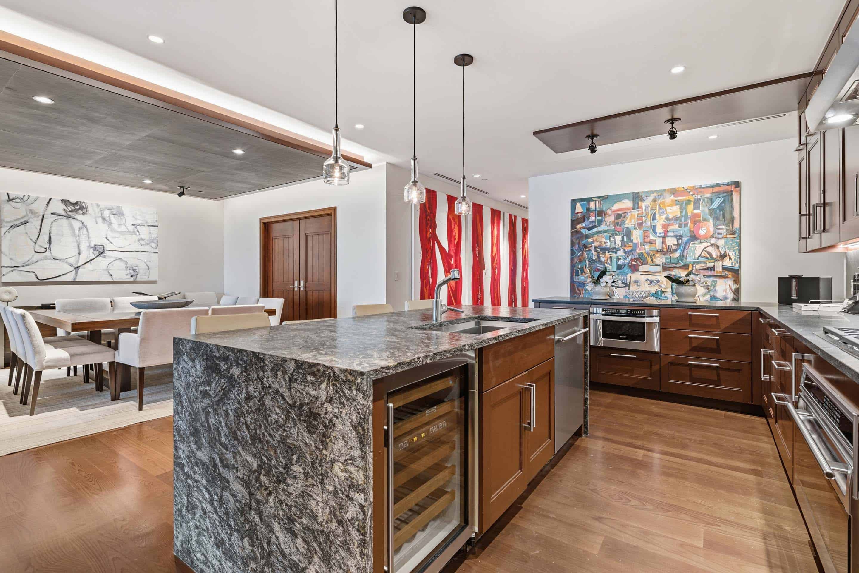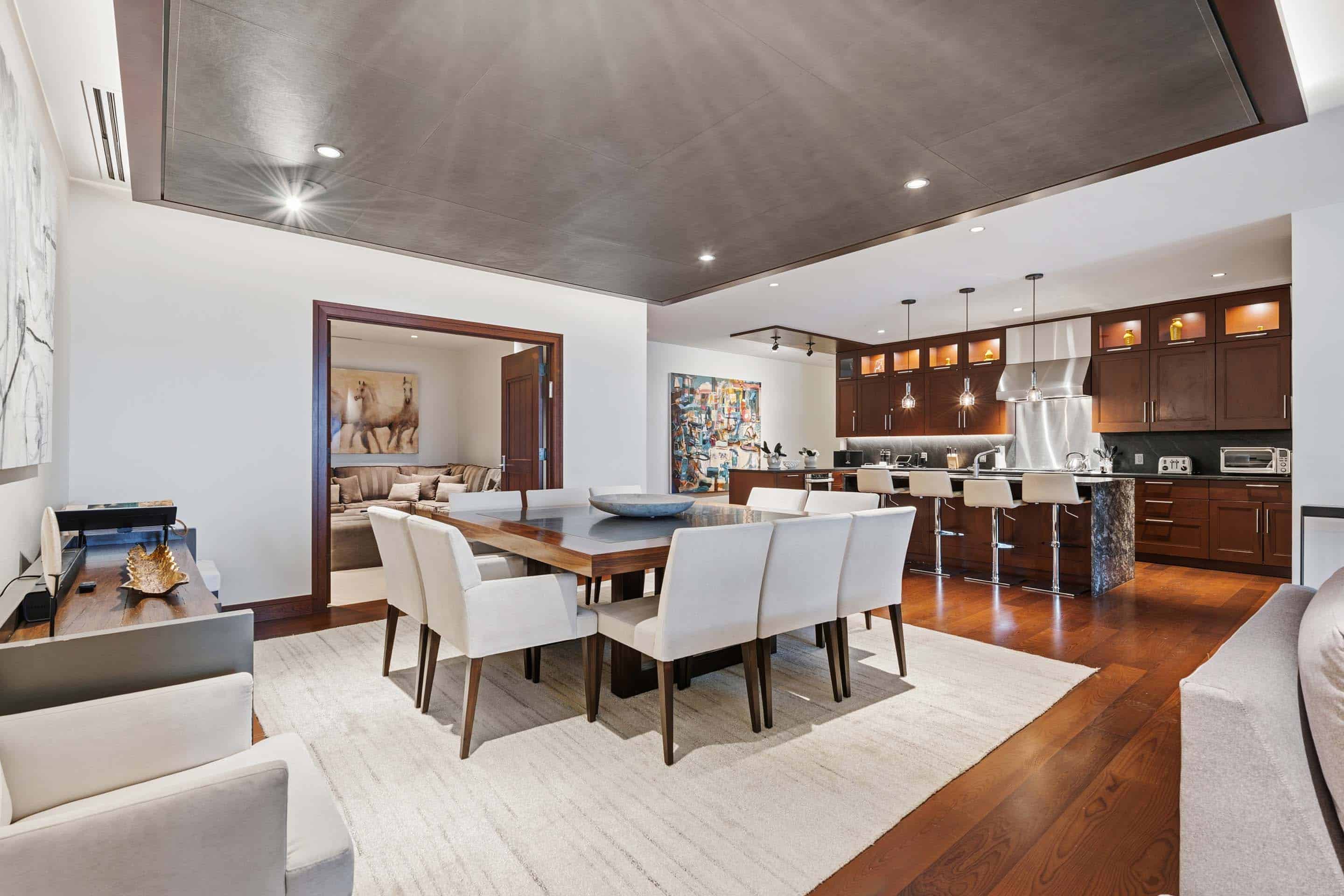 Set within the most exclusive resort in Vail Village - Solaris - this discriminating, seventh-floor residence offers a great room with a gas fireplace, an epicurean kitchen with premium appliances, a wine refrigerator, and natural stone, waterfall-edge island, as well as a dining table for 12. Additional features include four guest suites, each with a magnificent, attached bathroom (the primary with a king size bed, the second with a queen size bed, the third with two twin beds, and a fourth room with two double beds), a den with sofa, stacked washer/dryer, Frette linens, Creston home automation, and one ski locker at the Gorsuch Ski Café at the base of Gondola One. This residence is 2,882 sq/ft.